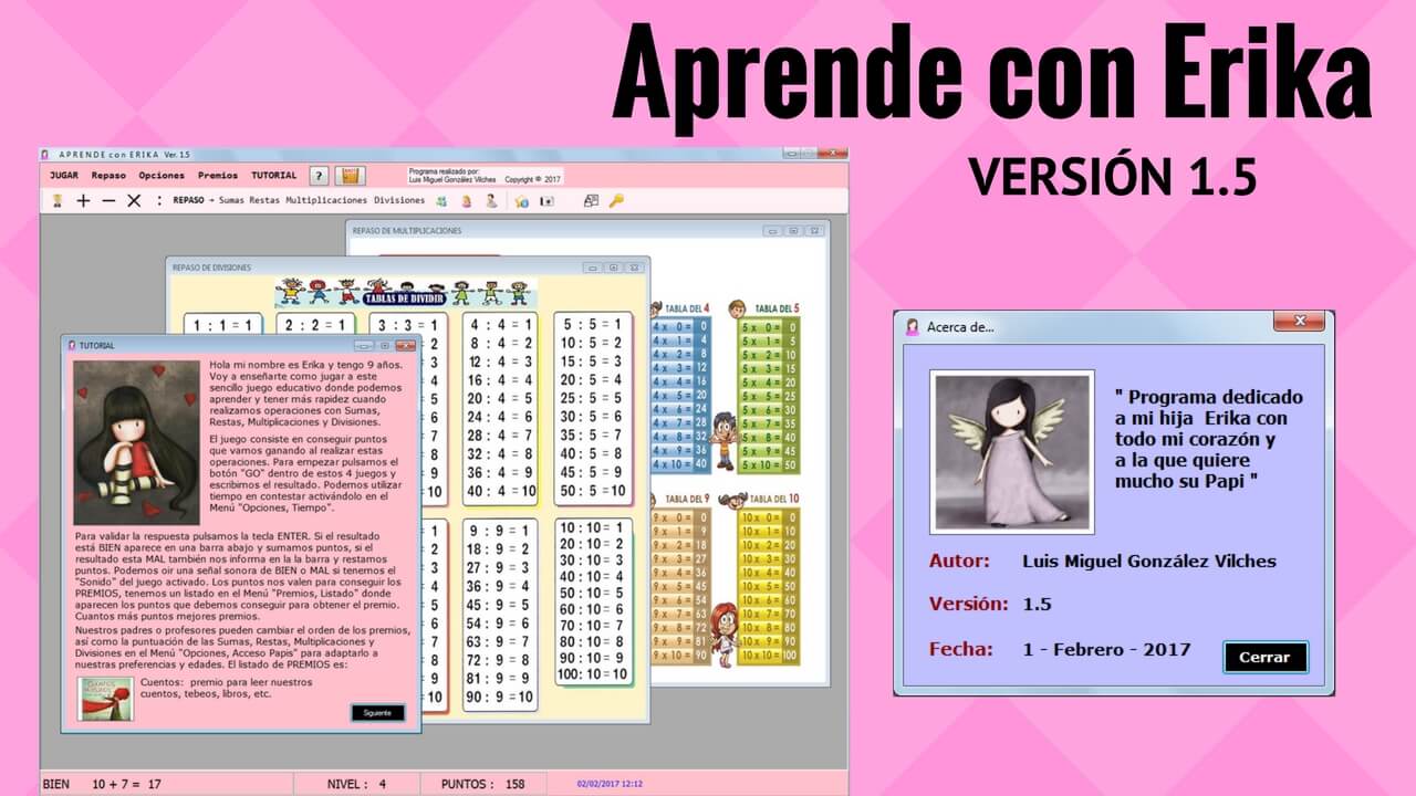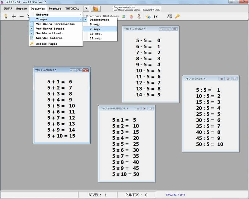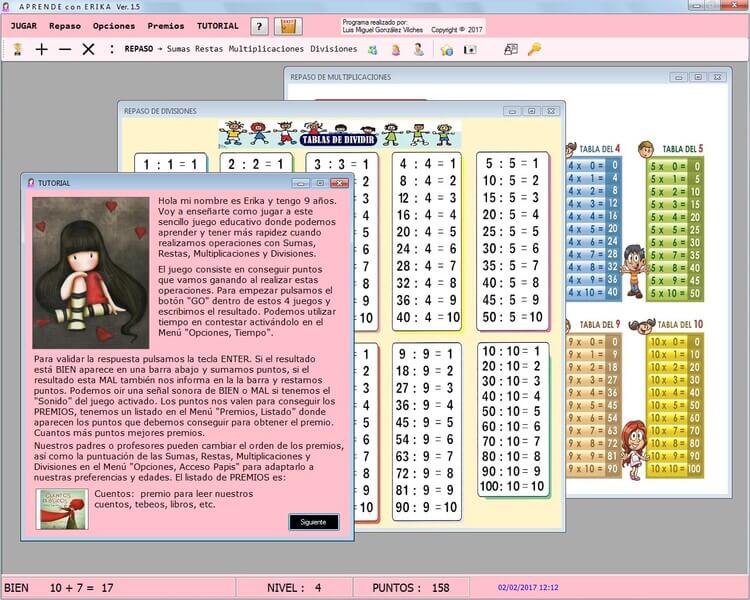Through this program, we can motivate our children to learn addition, subtraction, and multiplication tables while playing and earning prizes. This approach ensures that our children dedicate time to mathematics while having fun. We offer various levels with pictures of cartoon characters suitable for both girls and boys. There is also a list of common prizes that parents can offer for achieving certain points. Additionally, the program allows us to review individual or combined tables, all presented in a child-friendly graphical environment.