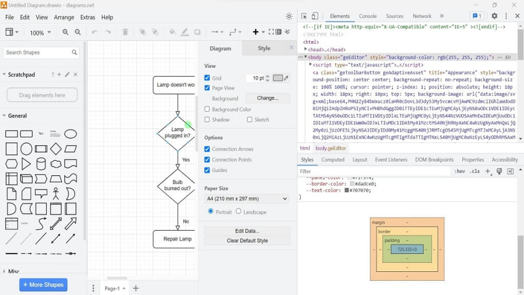 Draw.io has been specifically designed for Microsoft Windows computers. With this product, you can create simple as well as complicated diagrams on the spot. The tool offers various features, incorporating a wide range of elements, such as basic shapes, arrows, stick figures, etc. While using Draw.io, you can create simple sketches, professional diagrams, and even customizable flowcharts.